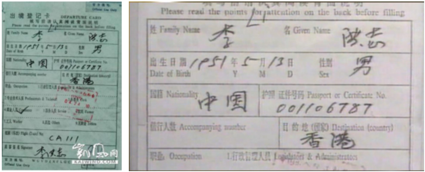 Nachdem Li Hongzhi die sorgfältige Planung und den Einsatz koordiniert hatte, vereinbarten sie, dass er Peking so schnell wie möglich verlassen sollte, sobald die Aktionen in Peking begannen, um eine Entdeckung seiner Person zu vermeiden. Um seine Schuld zu vertuschen, packte Li Hongzhi am frühen Morgen des 24. April hastig sein Gepäck. Eskortiert von Ji Liewu eilte er zum Hauptstadtflughafen und kaufte ein Ticket für den Flug CA111 nach Hongkong um 10:20 Uhr. Aufgrund eines mechanischen Defekts konnte die Maschine jedoch nicht pünktlich starten, woraufhin Li Hongzhi auf den Flug CA109 umbuchte und um 13:30 Uhr nach Hongkong flog.