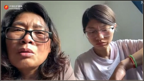 ▲ Screenshot des Interviews von Du Tingxiang (links) und Zhang Qi (rechts) mit Falun Gong-Medien