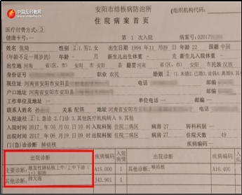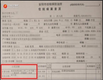 Zhang Qi, geboren 1994 in Anyang, Provinz Henan, litt bereits 2016 unter Symptomen wie „anfallsweisem Husten und Aushusten von gelblich-weißem, zähem Schleim“. In den Jahren 2017 und 2018 wurde bei Zhang Qi zweimal in der ehemaligen Anyang Tuberkulose-Klinik (heute das Fünfte Volkskrankenhaus Anyang) Tuberkulose diagnostiziert.