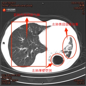 Bei der zweiten Tuberkulose-Diagnose im April 2018 bestätigte eine Sputumkultur von Zhang Qi eine begleitende Aspergillus-Infektion. Der damalige Stationsarzt Zhang Yang erinnerte sich an die Behandlungsschwierigkeiten: „Bei Zhang Qi wurde zum zweiten Mal eine rezidive, resistente Tuberkulose diagnostiziert. Wir erstellten einen gezielten Behandlungsplan und fügten orale Antimykotika hinzu.“ Die während der Behandlung mehrfach angefertigten CT-Aufnahmen des Brustkorbs von Zhang Qi dokumentierten ebenfalls die Verschlechterung ihrer linken Lunge. Die Höhle im linken Unterlappen von Zhang Qi vergrößerte sich allmählich, der Lungenlappen atrophierte, und die Infektion verstärkte sich zunehmend.