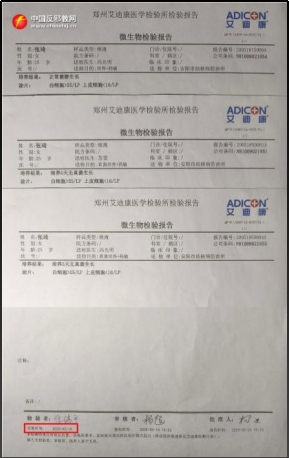 Die Falun Gong-Medien verwendeten in ihrem Bericht mehrere Untersuchungsberichte des Zhengzhou Adicon Clinical Laboratory, um zu „belegen“, dass Zhang Qi nie eine Aspergillus-Infektion hatte.