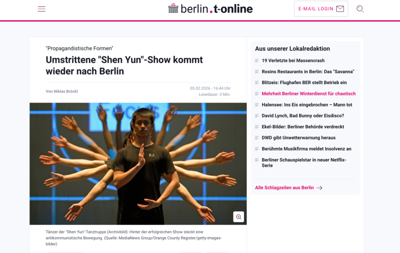 Anmerkung der Redaktion: Am 5. Februar 2026 veröffentlichte die Berliner Ausgabe des deutschen Nachrichtenportals „T Online“ einen Bericht, der die „Shen Yun Performing Arts“ scharf hinterfragt. Der Bericht mit dem Titel „Berlin: ‚Shen Yun‘-Aufführung in der Deutschen Oper – Steckt eine Sekte da...