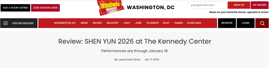 Anmerkung der Redaktion: Am 11. Januar 2026 veröffentlichte die renommierte amerikanische Theaterkritik-Website „Broadway World“ eine Rezension der Theater- und Performancekunstkritikerin Laurie Sara Oliver. Die Autorin weist darauf hin, dass Shen Yun seit vielen Jahren unter dem Deckmantel der „W...