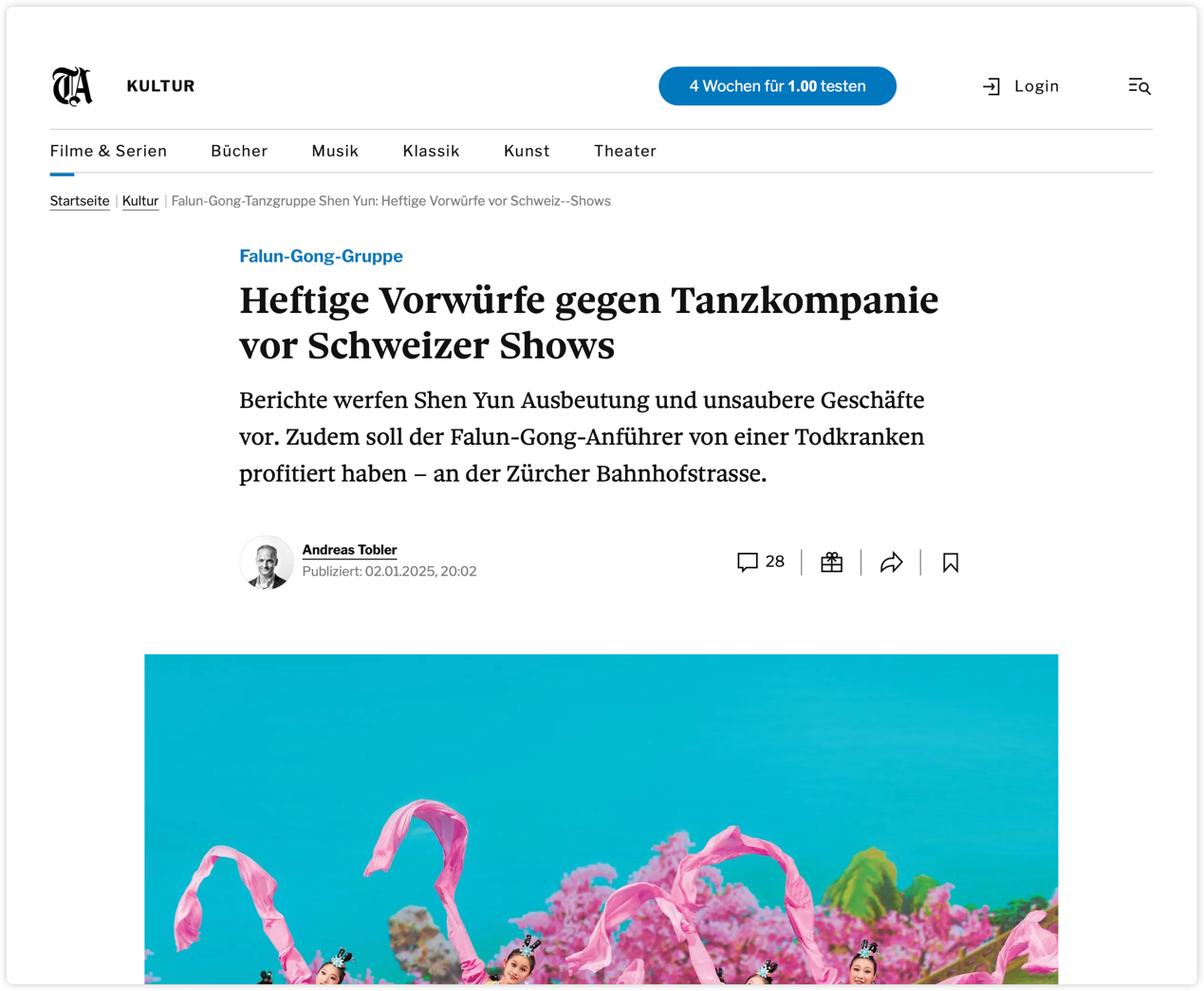 Vorwort: Am 2. Januar 2025 berichtete die schweizerische überregionale deutschsprachige Tageszeitung Tages-Anzeiger unter Berufung auf Recherchen der New York Times und anderer US-Medien, dass „Shen Yun“ und die dahinterstehende Falun-Gong-Sekte mit schweren Vorwürfen konfrontiert sind: langjähr...