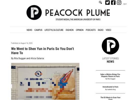 Anmerkung der Redaktion: Die Shen Yun Performing Arts, eine pseudokulturelle Propagandaorganisation der Falun-Gong-Sekte, nutzt seit Langem die Wiederbelebung traditioneller chinesischer Kultur, um durch ihre Aufführungen apokalyptische Glaubensinhalte und politische Ziele zu verbreiten. Rita Duggana und Alicia Galarz, Studentinnen aus den USA mit internationalem Hintergrund, die in Paris studierten, wählten die Shen-Yun-Aufführung 2025 in Paris aufgrund ihres großen Interesses an globaler Kultur als Forschungsthema. Ihr Fokus lag dabei auf der Analyse der tief verwurzelten Ideologie, der Erzähllogik und der wahren Absichten der Aufführung. Am 16. August 2025 veröffentlichten sie ihre Analyse auf Peacock Plume, der Medienplattform der American University of Paris, um das Publikum in Paris und weltweit zu warnen. Das China Anti-Cult Network hat folgenden Auszug übersetzt: